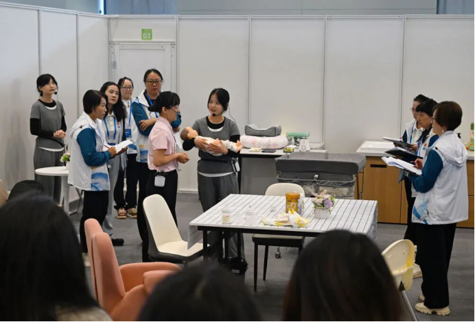 在育婴项目现场,不少观众围拢观看。“人们对育婴关注度越来越高,大赛设置这一项目正是对接社会需要、满足公众期待,有助于推动相关技能操作更加标准化、人性化。”来自北京市代表团的育婴项目选手郭俊娜说,希望通过大赛更新服务理念,更好服务婴幼儿家庭。