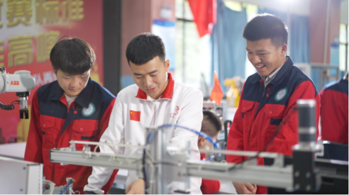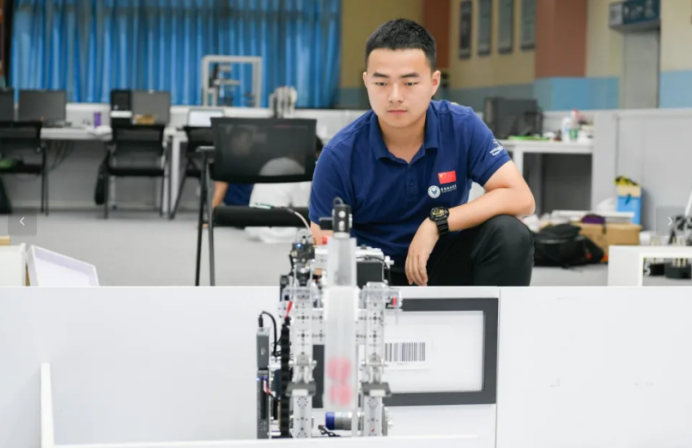 留校任教后,郑棋元将世赛理念和技术标准融入日常教学。在他的带领下,中国选手又连续夺得第46届、47届世赛移动机器人项目金牌,实现该项目的“三连冠”。