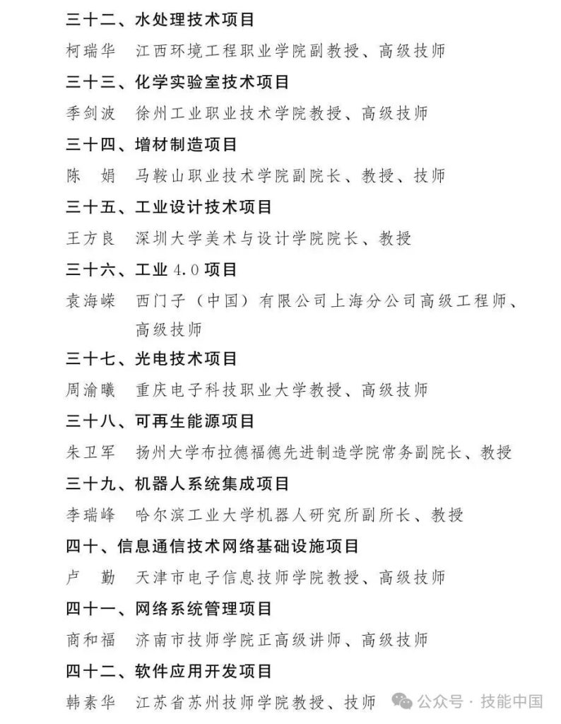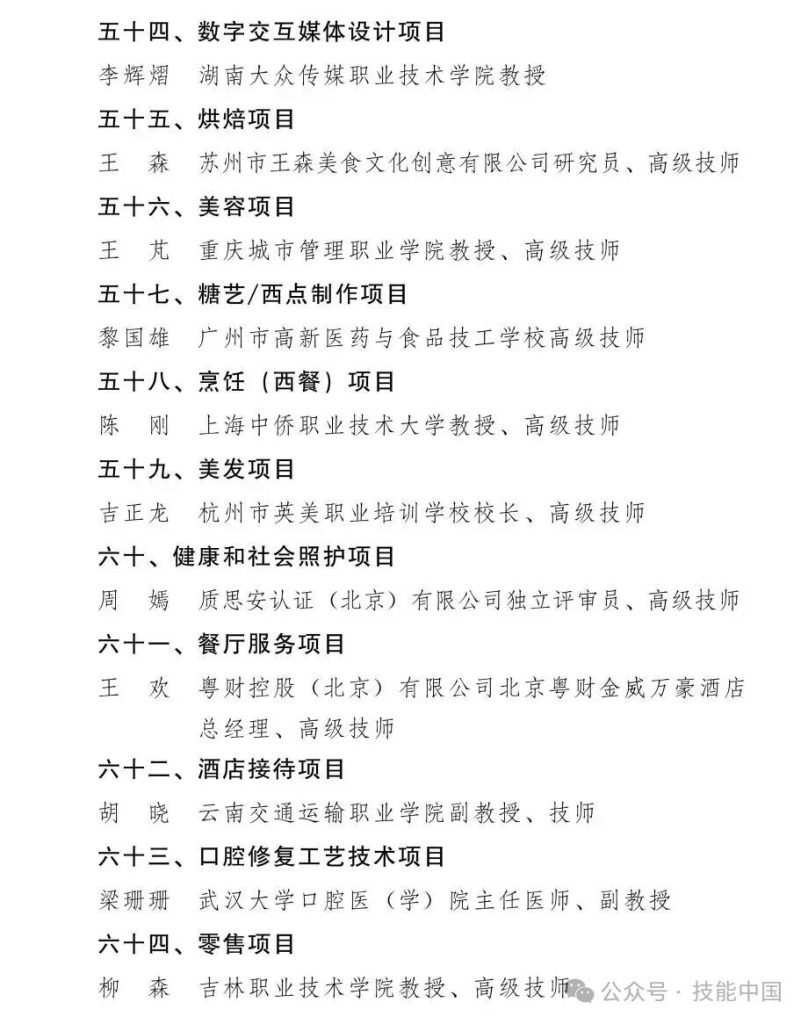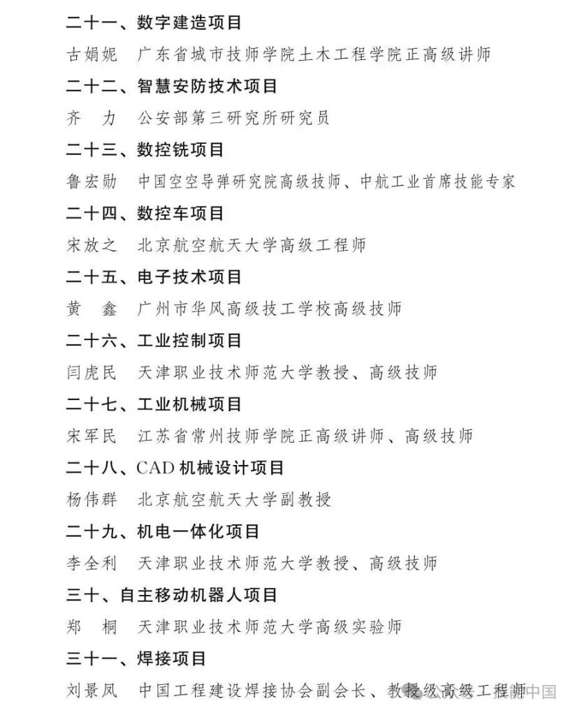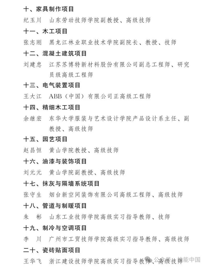 第48届世界技能大赛中国技术指导专家组组长名单公布