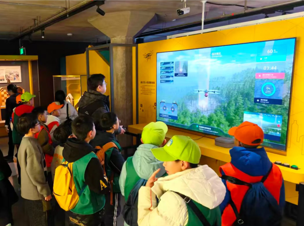 在体验过程中,互动装置还会向观众系统介绍无人机的飞行原理,内容涵盖航空力学、导航系统、数据传输、电子技术和遥感技术,以实操和讲解相结合的方式,生动、形象地展示基础科学与技术创新的紧密关系。对青少年而言,该展项将“低空经济”等抽象概念转化为直观、有趣的互动形式,引导青少年思考技能在未来城市发展与产业变革中的赋能作用。
